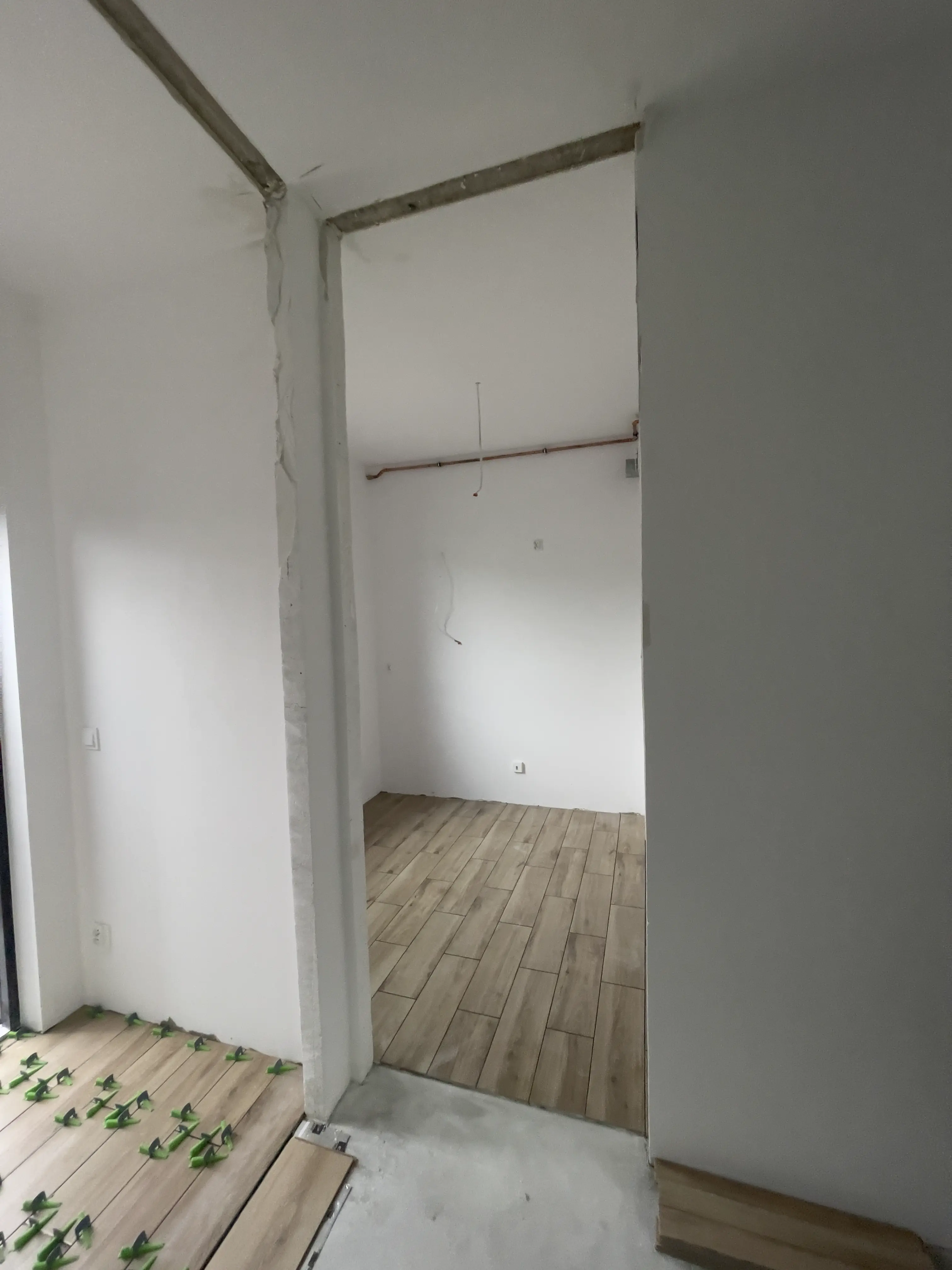 W pierwszym etapie dokonano korekty wymiarów otworów drzwiowych. Prace obejmowały dostosowanie szerokości i wysokości otworów do planowanej stolarki, z zachowaniem stabilności konstrukcyjnej ścian oraz właściwego przygotowania pod późniejszy montaż drzwi.