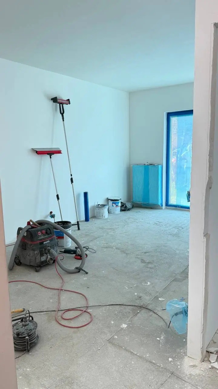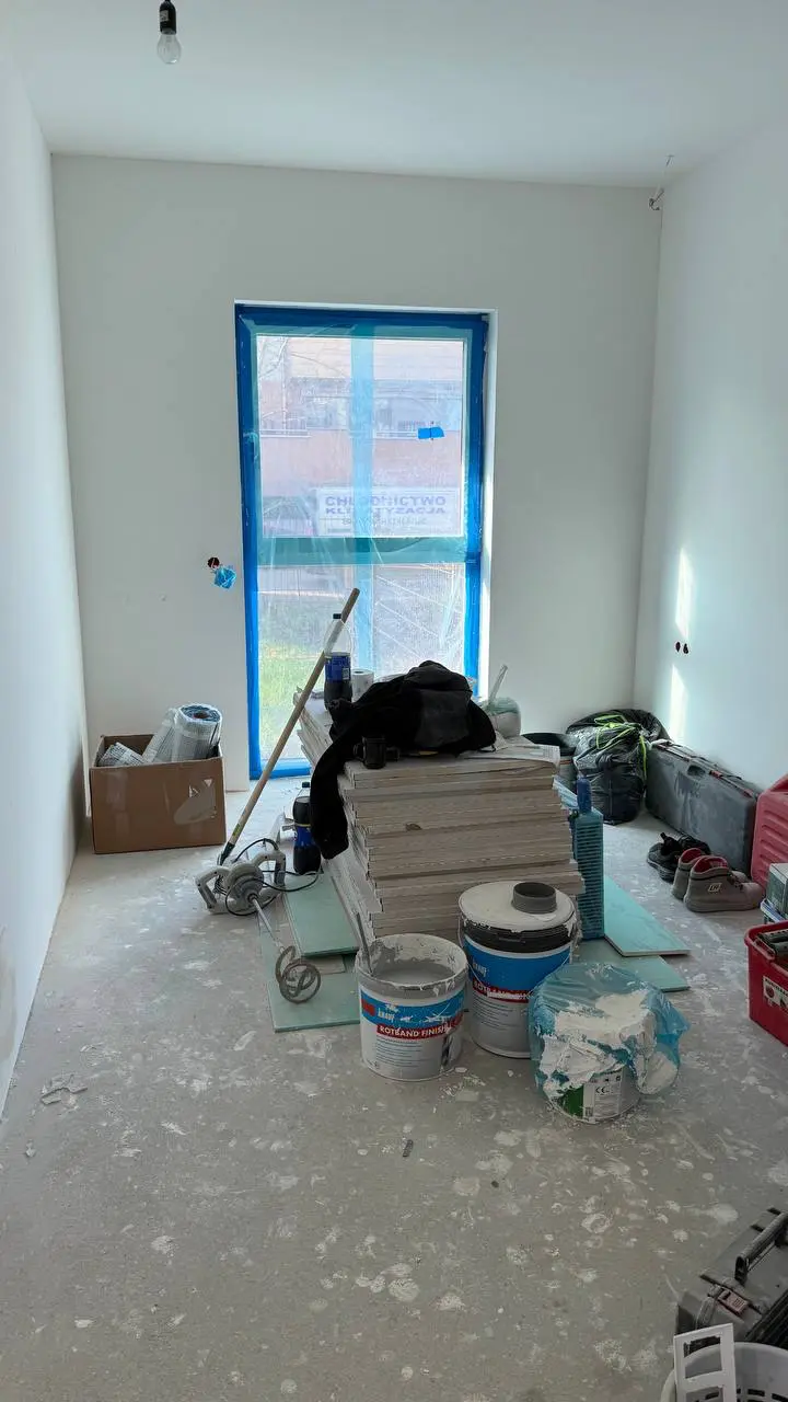 Całość prac została zakończona wykonaniem gładzi, malowaniem, montażem paneli podłogowych oraz listew przypodłogowych.