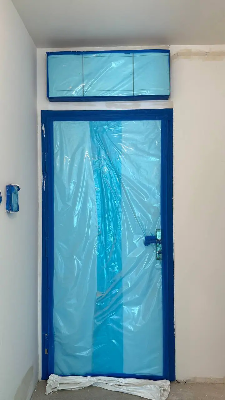 Szczególnym elementem realizacji był montaż drzwi ukrytych. Po osadzeniu ościeżnic wykonano pełną obróbkę ścian, następnie precyzyjne szpachlowanie, malowanie i lakierowanie, tak aby skrzydło idealnie zlicowało się z płaszczyzną ściany.